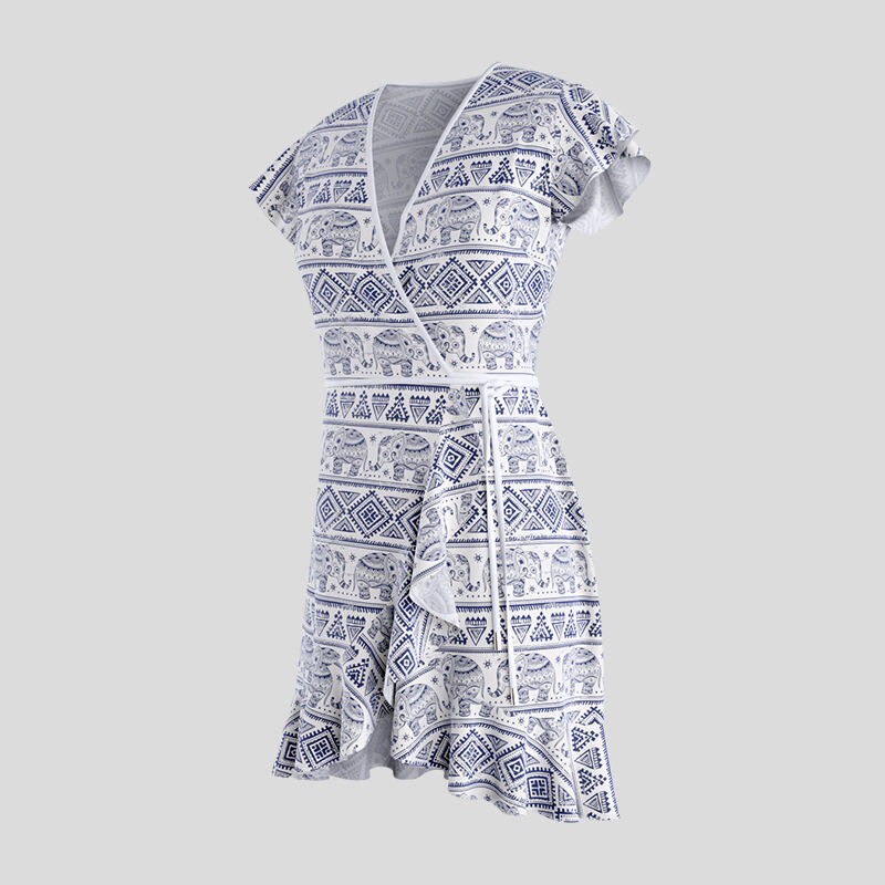 Your flounce hem, casual tea dress is completely handmade from start to finish. Once you have placed your order, our expert printing technicians use modern digital printing techniques to penetrate eco-friendly inks deep into the fibres of your chosen fabric. This deep infusion method leaves a permanent print in stunning quality with rich colours and fine detailing.