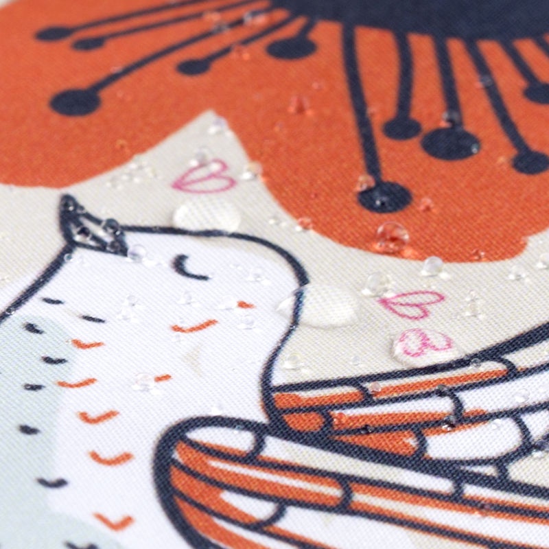 Tablecloth fabrics are all printed digitally in our Bags of Love studio, your custom design is printed onto the white fabric tablecloth, in long-lasting, full colour splendour. You can then choose to have your customised table cloth material hemmed, with either a folded hem using a straight stitch, or an overlock hem. If you want to finish your tablecloth fabric yourself, you can have it sent to you exactly as it comes off the printer, or with the white edges removed and your design cut on the line.