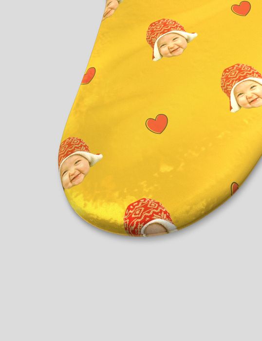 But you already knew that. Our elves print your design onto the Soft Velvet fabric using a deep infusion technique that bonds the ink to the fibres of the material. This means it's long-lasting, and you can use this stocking for the rest of your life. Our craftsmen then cut everything into shape and our seamstresses sew each part together. It's finished with a velvet ribbon in the colour of your choice, and sent out to you, just like a little pre-Christmas gift.