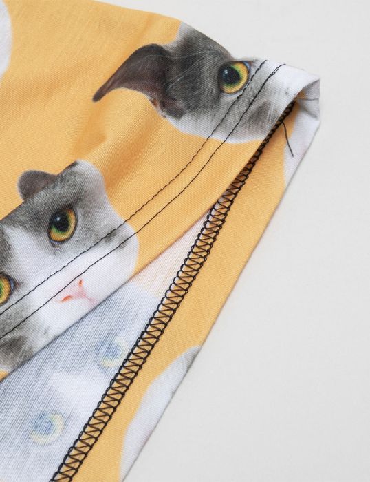 Turn inside out before washing. 30°C wash. Do not wring. Low heat iron, Iron on the reverse of the printed side. Do not tumble dry.