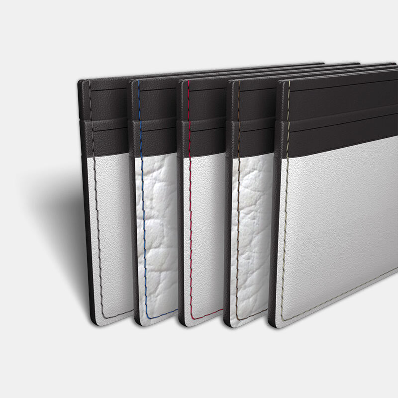 If you want a symmetrical printed card holder, simply upload your image to one side, click to design the other side but press 'Copy Side'. This will transfer the same image as it is onto the other side, so go onto Effects and select 'Mirrored Design'. Drag your photo across until the mirrored version comes into view and position accordingly. There are two pockets on either side as well as a central section. The pocketed section is black and sits at the top of your leather card case, above the print. Be mindful of this when creating your design, especially if you are using photos with faces, as you don't want important features like eyes being cropped out.