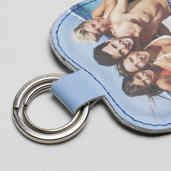 We print your photos onto both sides of the soft leather, which is then cut to size and hand-stitched by our expert seamstresses. Two layers of leather are stitched together with a padded layer of neoprene in between. You can choose between cream, charcoal, brown, blue or red 40 gauge thread. This colour will also be used for the edge painting, which is done at the very edge to seal the leather and provide a premium finish. A tab at the top accommodates the polished metal rings. Everything is done by hand so your photo leather keyring or heart-shaped leather keyring with photo is unique in every way. The print is long-lasting, thanks to our specialist process that fuses the inks deep into the leather fibres, creating a high definition print with beautifully saturated colours.
