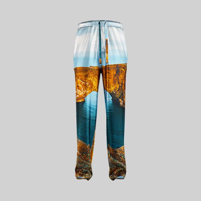 In our men's custom silk pyjamas, you’ll want to wear the PJ shirt everywhere, and conveniently you can. The pyjama top go-to is breezy in fit with modern mother of pearl button closure. Oversized in the generous, luxurious way, you can customise its 6 panels and wear it about the house, WFH or on daytime cafe visits. The PJ shorts in the men's custom luxury silk pyjama set are as suitable at a summer barbecue as they are in bed too. It has a drawstring waistband and breezy yet slim fit that finishes just above the knee that can you trick out in lively holiday photos, subtle images and text. Our trousers are super practical with a nice, straight-cut fit that ensures a classic look, while allowing room to lounge around the house freely.