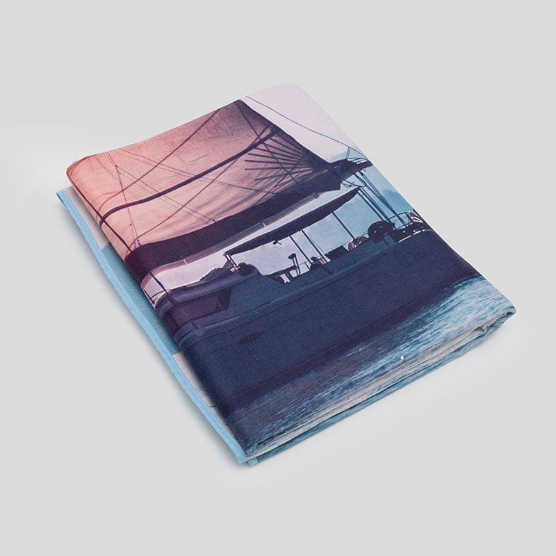 The printed front is a lightweight poly-microfibre that dries in no time, while the reverse is traditional cotton terry towelling that soaks up water fast. This makes the towel ideal for travel, camping or the gym – it packs down small and won’t stay damp in your gear bag. If you’re after a custom beach towel for yachts or campervans, this is the perfect pick.