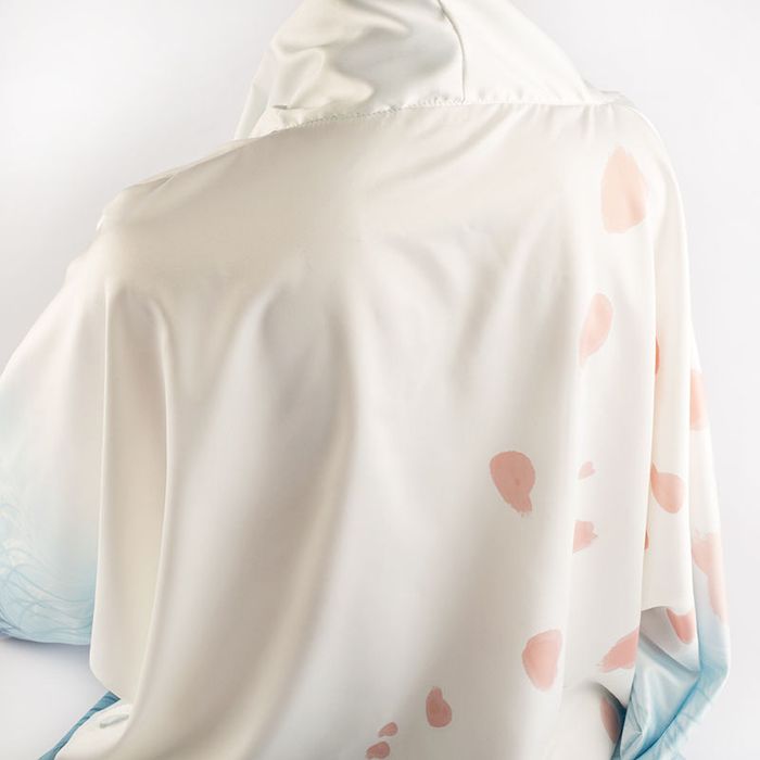 Your design is printed by our expert technicians using the latest digital printing techniques. Using a deep infusion method, eco-friendly inks are penetrated deep into the fibres of the fabric. This results in a long lasting print which will not fade, peel or crack. Because of the state-of-the-art technique, your personalised bridal robes will retain their original handle; there won't be any alteration to the texture of the sumptuous fabric that you would find with transfer printing.
