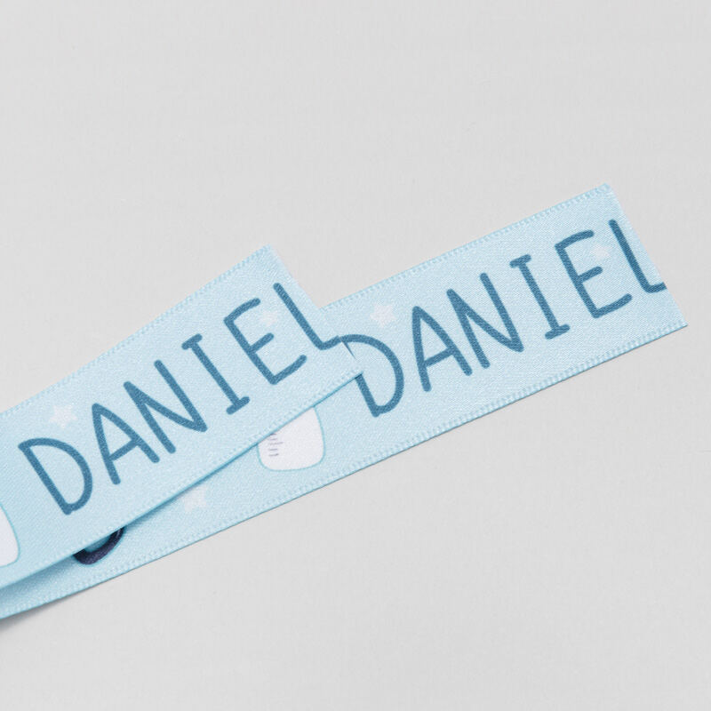 Your personalised christening ribbon is the same 25 or 50 cm pattern repeated across the length of 10 metres. If you're making personalised baby shower ribbon with photos on it, we would advise opting for the 50 or 70 mm ribbon, as there is more space on this one and you will be able to see the image more clearly.