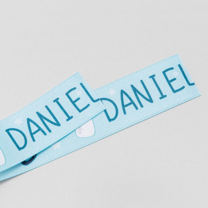 Your personalised christening ribbon is handmade to order, from the printing to the finishing. We use a deep infusion printing method which bonds the eco-friendly inks to the 190 gsm satin fabric, resulting in a beautiful, long-lasting print.