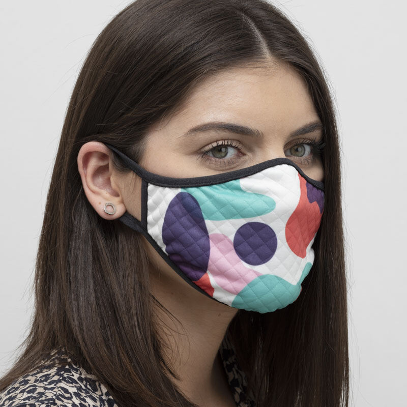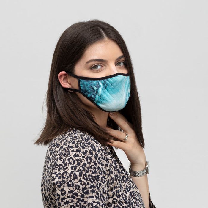 Each and every personalised mask is handmade to order in our facility. Available as a pack of two or four, we print your designs directly onto the fabric using a deep infusion printing technique which results in a long-lasting print which is fade-resistant. This means that you can machine wash your custom mask time and time again. Once printed, your fashion mask is then cut to size and shape and stitched together by our expert seamstresses, with two looped pieces of elastic that you can hook over your ears.