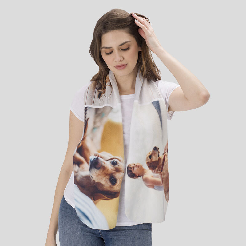 Our fleece scarves are available to design online using your own photos, images, and text.