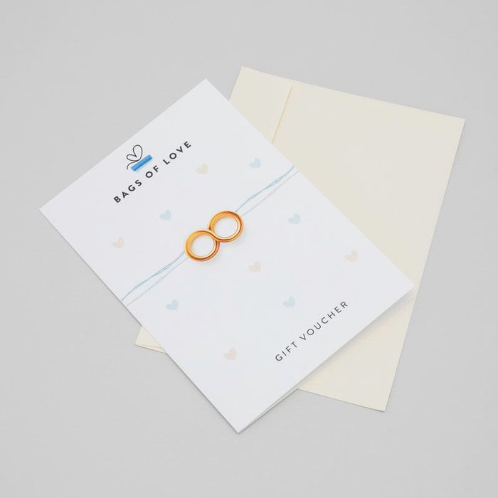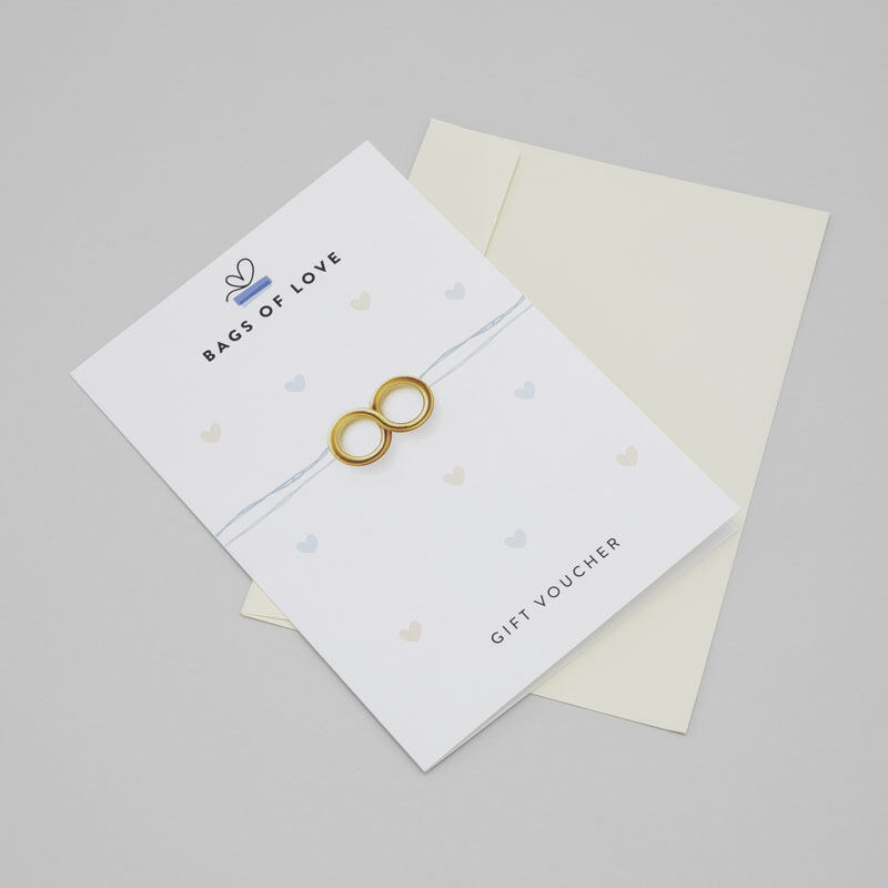 Because every occasion is special, we have created a range of themes for your custom gift vouchers. Choose from five different designs to suit your occasion. All five designs showcase the Bags of Love logo and the words "Gift Voucher," so there can be no mistaking what the recipient has received. The "Classic Gorgeous" gift voucher design features an adorable red handbag with a colourful spotty background. This design is perfect for birthdays or for a "just because" present. If you have a wedding coming up, then opt for the "Wedding" theme gift voucher. Featuring a simple yet striking design of two gold wedding bands against a background of colourful hearts, this stylish design is ideal for any wedding. For a special birthday, the "Birthday" theme voucher showcases an adorable birthday cake and party hat design. Parents of newborns will love to receive our "Baby" theme gift card. Featuring a sweet pram design with a scattering of baby pink and blue balloons. Finally, the "Christmas" theme gift voucher will make the perfect Christmas gift for anyone. The front of this voucher has a pretty design of a Christmas present and colourful stockings.