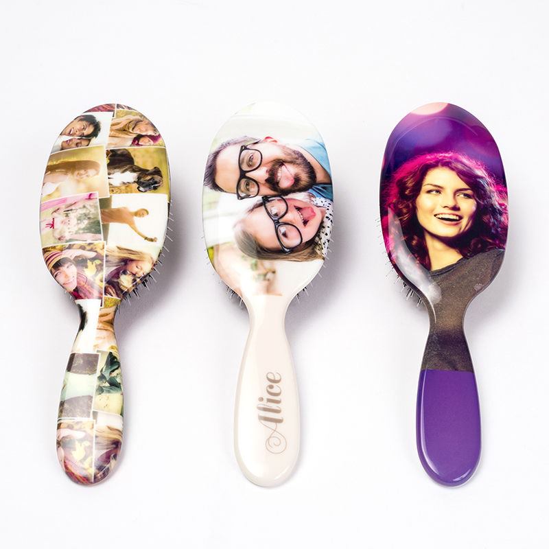 Men: Design a custom hairbrush for men in neutral tones or barber-inspired graphics – perfect for the desk drawer or overnight bag.