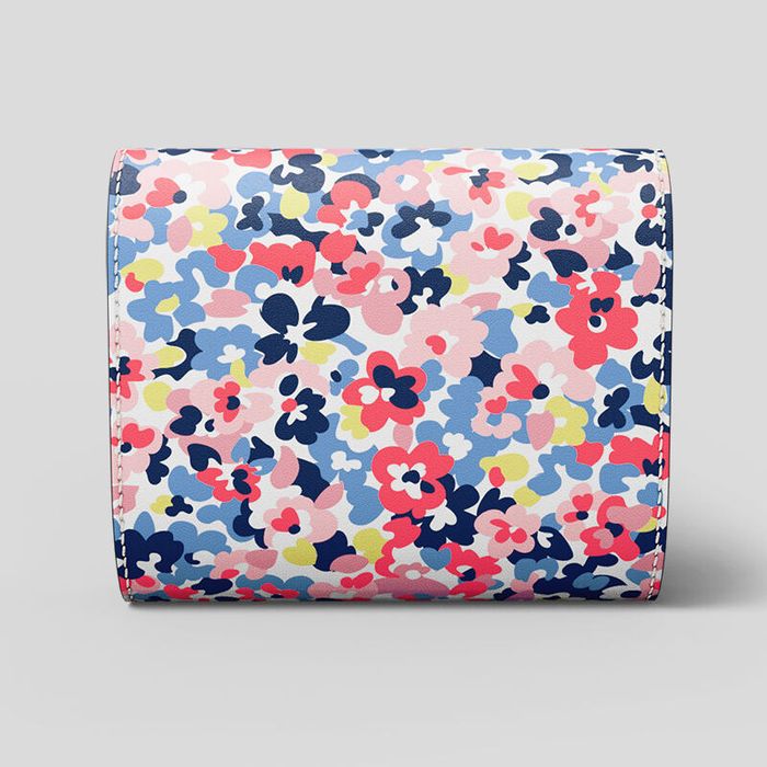 A personalised leather flap over purse holds your money without bulking up your handbag.