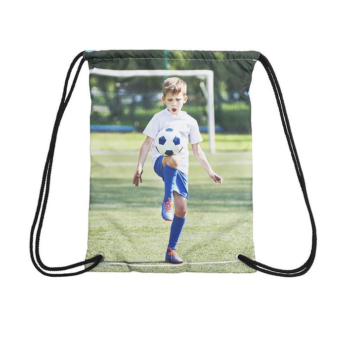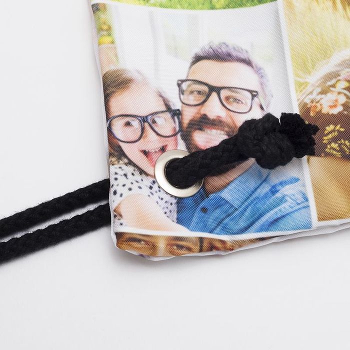 Please bear in mind the position of the metal eyelets in the bottom corners. If including your child's name, for example, you'll want to check that the letters don't sit where the fabric will be cut to compensate for the eyelets. Within the design interface, this is clearly marked out. Make the most of our double-sided printing and use one side for a photo and the other for more practical information, such as the child's name and the name of the nursery they attend, just in case anything gets lost. Making the personalised drawstring bag as easily identifiable as possible will help to prevent loss and confusion.