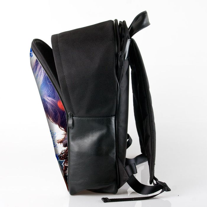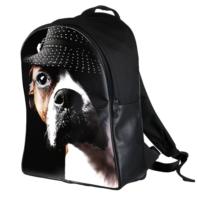 When you design your own school bag, you are designing the front face of the bag, which is made from our high-quality canvas. This will be printed edge-to-edge with your design. Surrounding the front face you'll have a glossy black edging, which will beautifully frame your personalised school bags design. The base of your bag, along with the lower half of both the right and left sides will be made from our Nappa leather, as will the handle on the back and the base from which your shoulder straps are seated.