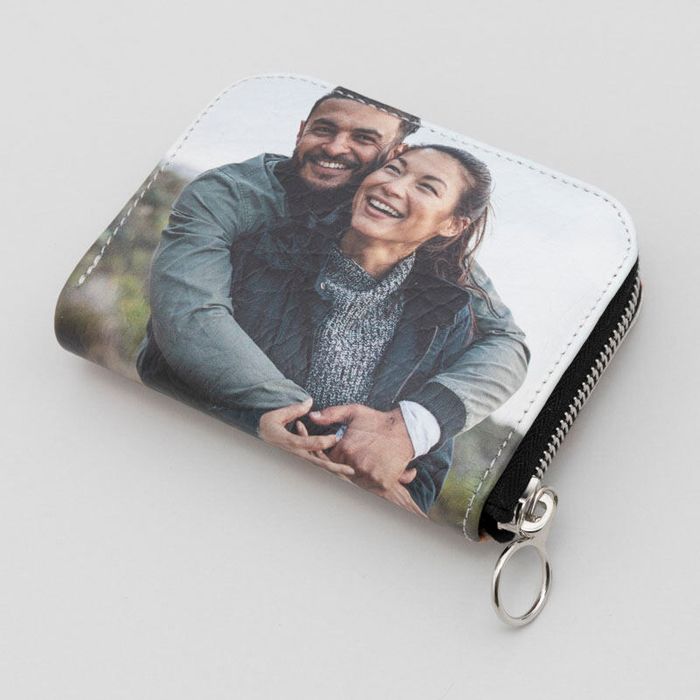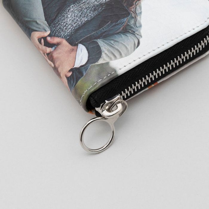 Well, not the gap so much as the fold. When designing your personalised women's wallet, bear in mind that you design the front and the back separately. Your leather photo wallet with zip, however, is made from one complete piece of leather or oilcloth. This means that there will be an image 'seam' at the bottom where the two designs join. This is barely noticeable once you design your own leather wallet and it is in use, and you can minimise this effect by using two photographs with similar colour palettes.