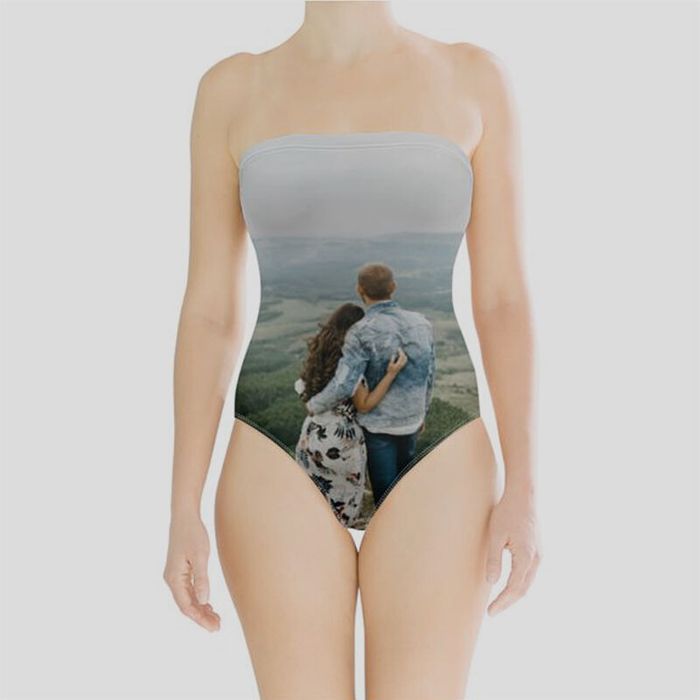 We have designed a stunning and flattering strapless swimsuit which can be personalised all over. Our custom printed swimsuit is handmade with love. Your chosen designs and photos are printed onto the Lycra fabric creating a strong and vibrant edge-to-edge finish. Your printed Lycra is cut and hand-stitched into the classic strapless swimsuit shape. Everything is quality checked to ensure it meets our high standards before being sent out to you. Everything is made and ready in 1-2 days, so you'll be strutting your stuff in your new photo swimwear in no time.