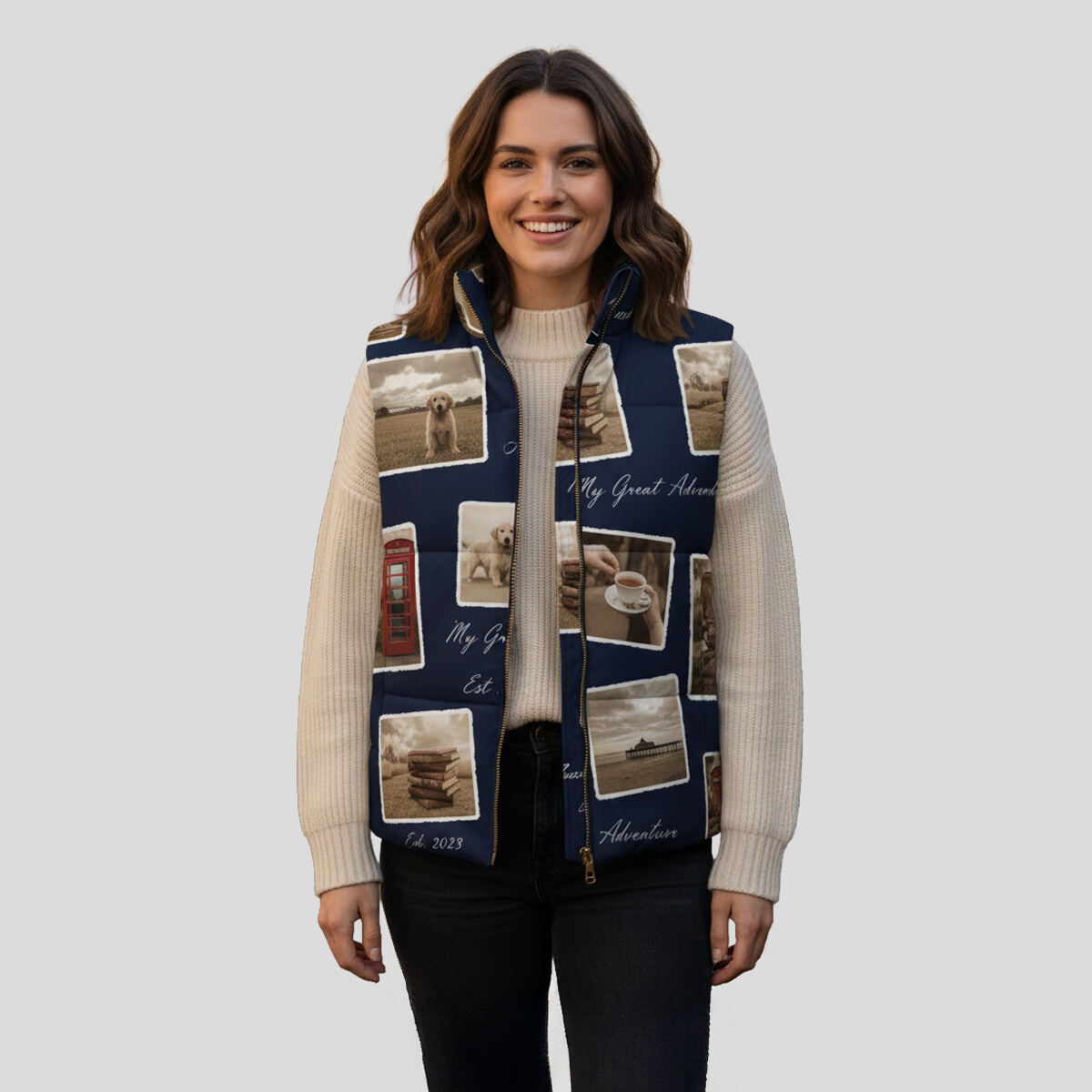With our commitment to speedy production and eco-friendly practices, your Unisex Gilet will be quickly manufactured and shipped worldwide. There’s no minimum order, meaning you can create as many personalised styles as you wish! Celebrate your unique story wrapped in warmth, comfort, and love.
