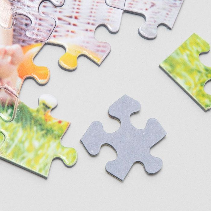 There's no need to rearrange your photos manually because our design system automatically creates the collage in various different styles. Choose a plain background with your photos spread out or have one of your photos faded in the background for an artistic look. There's also a heart collage where your photos are arranged into a heart shape - ideal for romantic gifts. The 'scattered' style fills the jigsaw edge-to-edge with photos, and the design system will let you know if any photos are repeated.